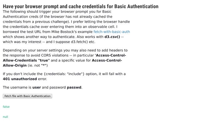 I’m having trouble forcing Safari to prompt for basic authentication credentials (even over HTTPS) on fetch. Is there a fetch option that I can use to fix the issue? Currently, loading it in Safari results in a 401 Unauthorized error.